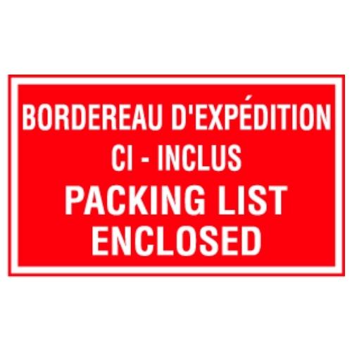 ‘PACKING LIST ENCLOSED’ Label – 3″ X 5″ – Bilingual Label